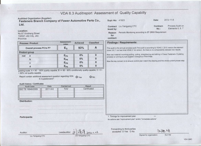 富奥紧固件分公司的前身是中国第一汽车集团公司标准件厂,是国内较早生产汽车紧固件的大型专业厂。