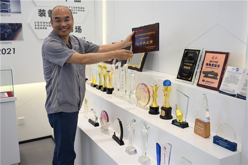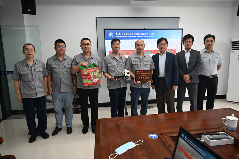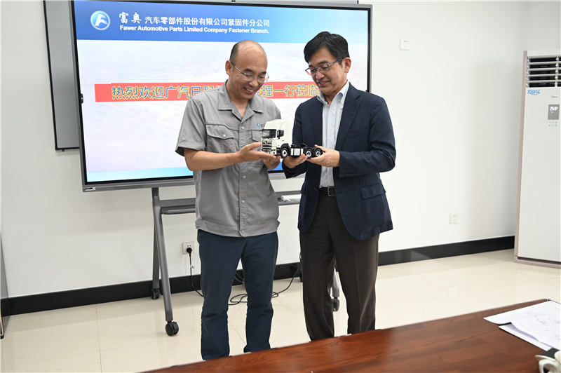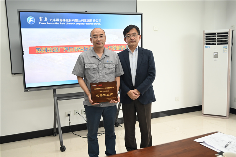 2022年7月13日,广汽日野总经理保田俊朗、采购部长大川聪史、采购科长徐沛坚等一行5人专程从广州来到吉林,为我公司颁发2021年度优秀供应商奖,这是我公司第3次荣获广汽日野颁发的优秀供应商奖;张鹏飞总经理、张进才副总经理、总经理助理施国臣等领导陪同客人参观了生产现场。