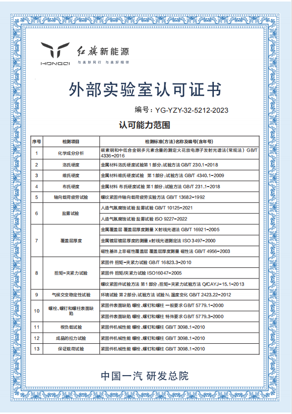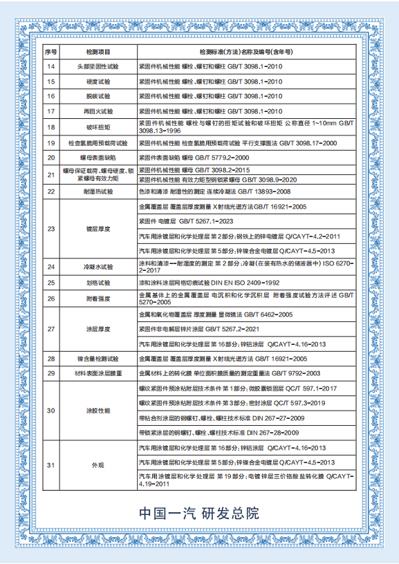 一汽研发总院---富奥汽车零部件股份有限公司紧固件分公司检测中心