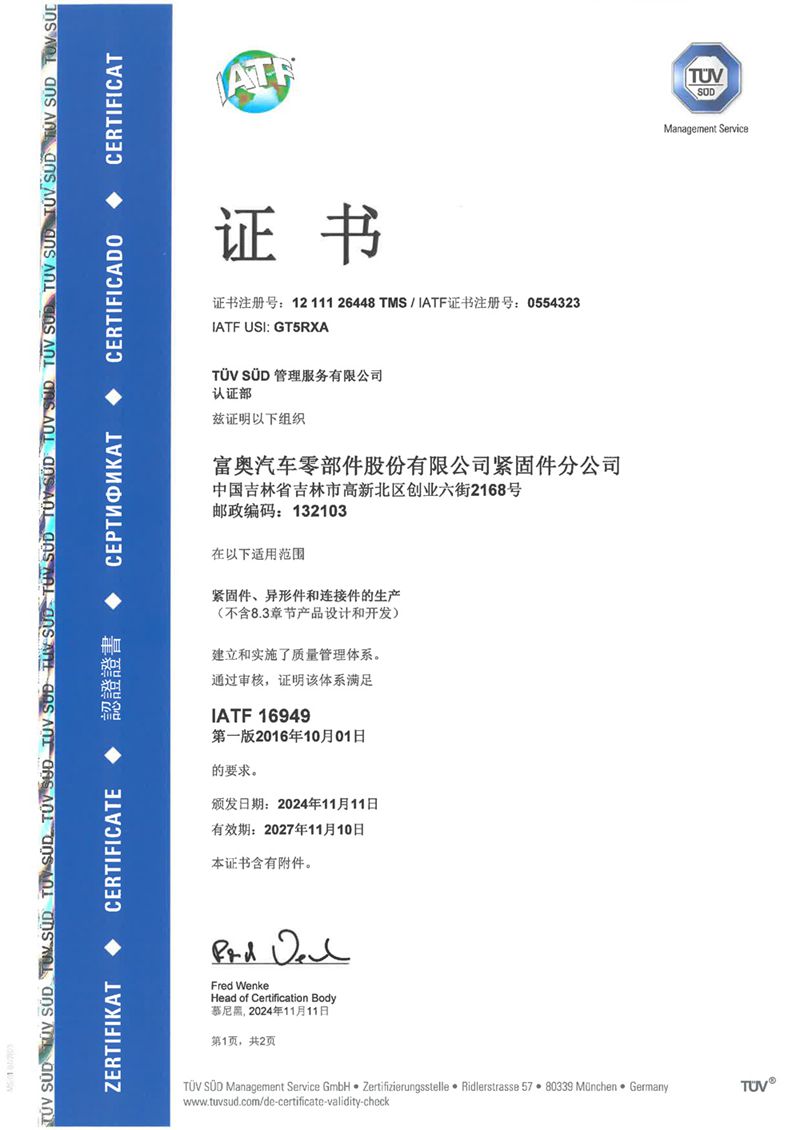 富奥紧固件分公司的前身是中国第一汽车集团公司标准件厂,是国内较早生产汽车紧固件的大型专业厂。