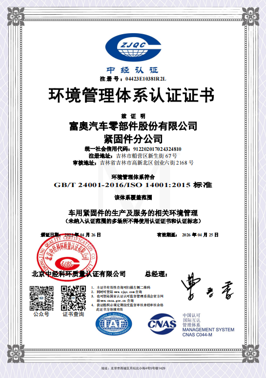 富奥紧固件分公司的前身是中国第一汽车集团公司标准件厂,是国内较早生产汽车紧固件的大型专业厂。